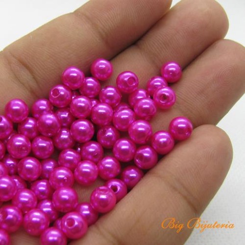Etiquetas: Pérola, ABS, pink, 06 mm, 25 gramas, aprox. 450 unidades