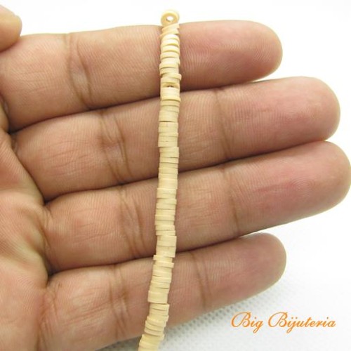 Disco de fimo 4mm bege 1 fio