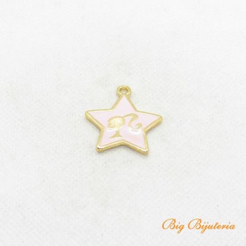 Pingente barbie ouro flash 25x25 mm rosa 1 unidade