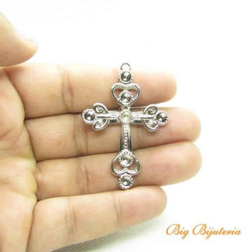 Pingente níquel 55x38 mm cruz 1 unidade
